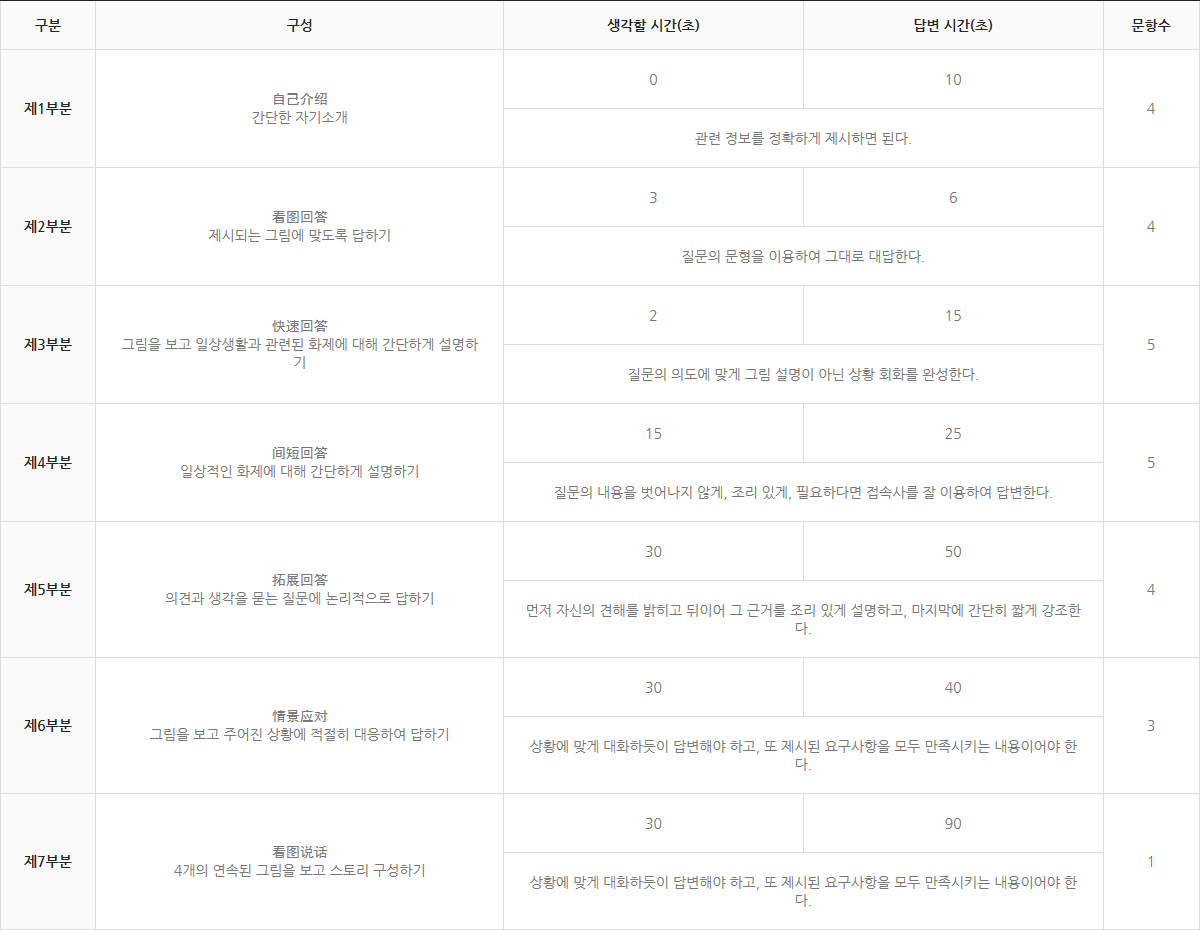 - 7부분 뒤에 시험에 대한 느낌을 간략하게(60초) 피력하는 부분이 있다.