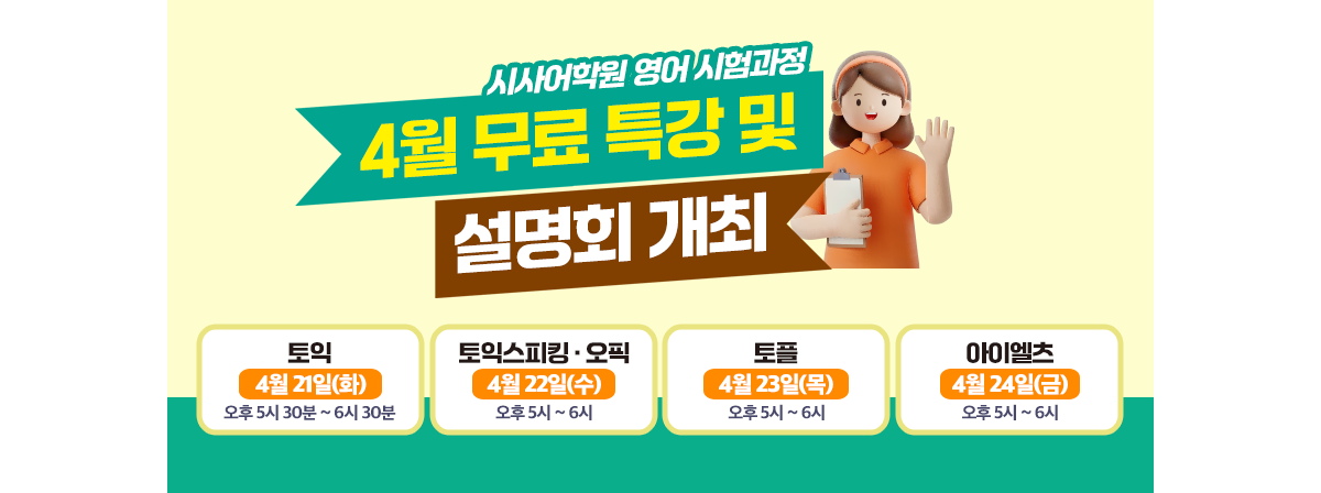 - [2026년 4월] 시사영어학원 이달의 이벤트…