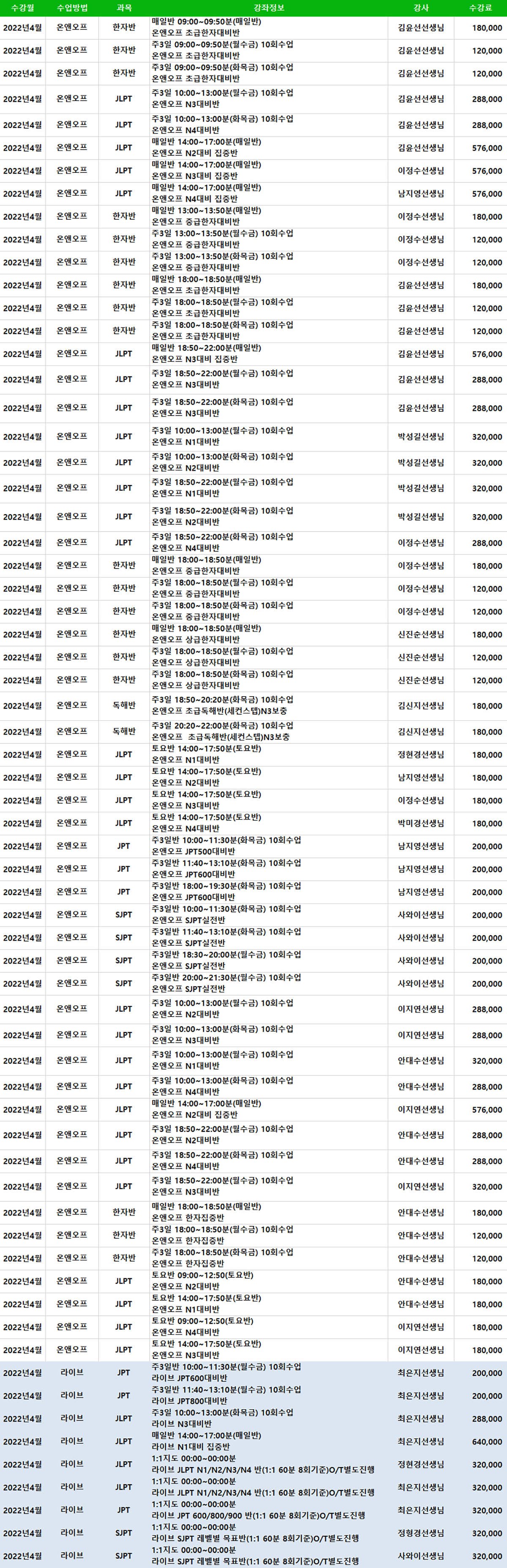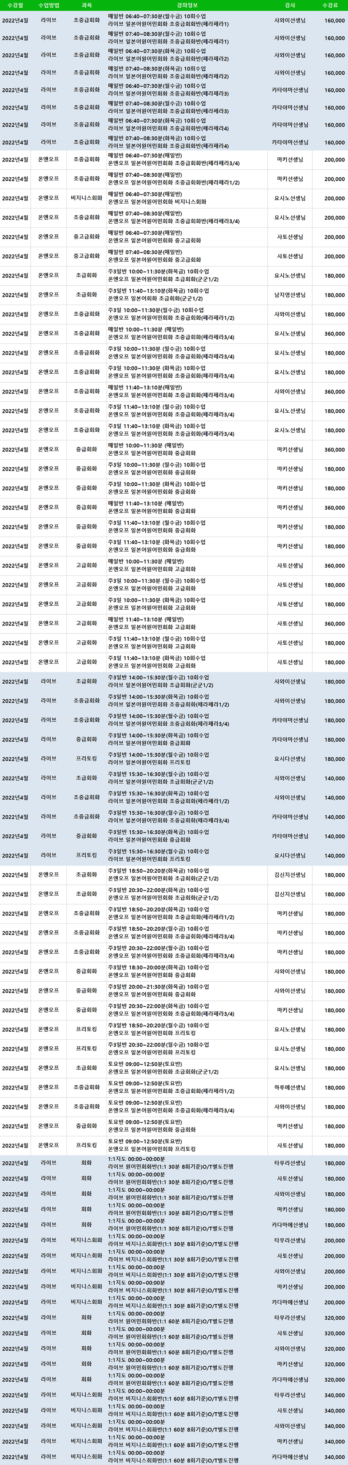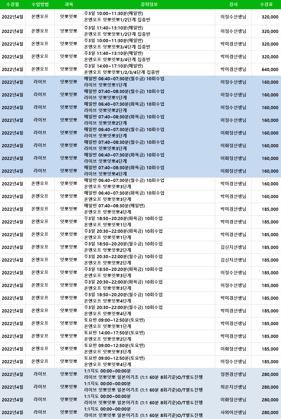* 교재비 포함 수강료입니다. 단) 원서를 사용하는 교재는 별도로 교재비가 추가될 수 있습니다.