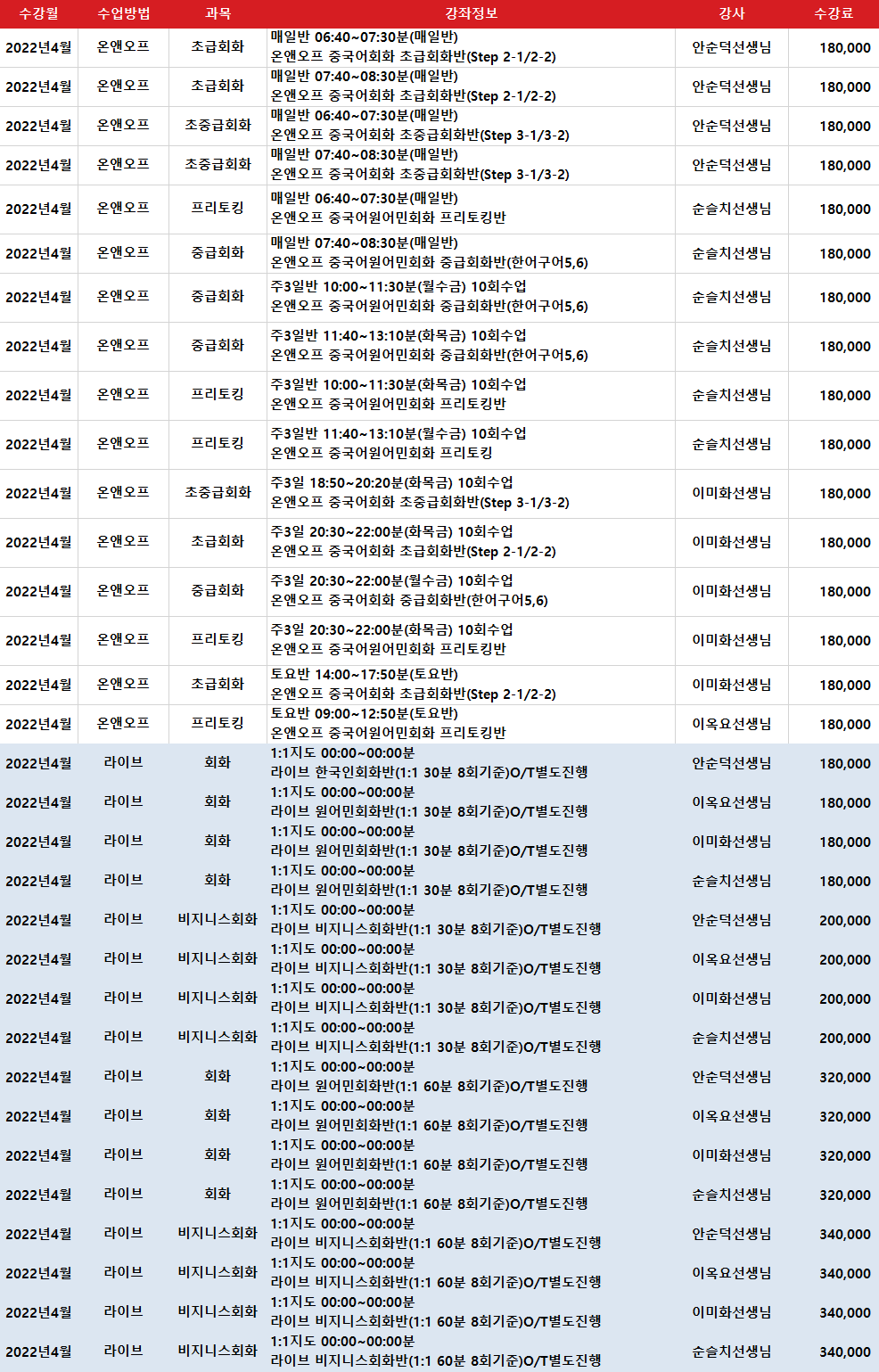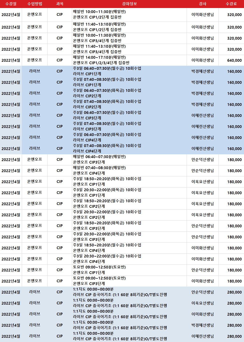 * 교재비 포함 수강료입니다. 단) 원서를 사용하는 교재는 별도로 교재비가 추가될 수 있습니다.