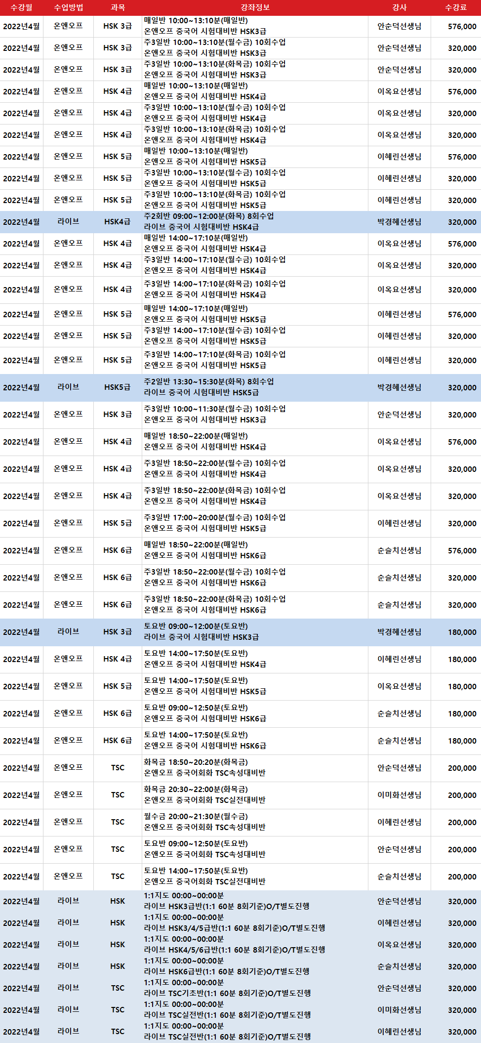 • 중국어HSK, TSC반