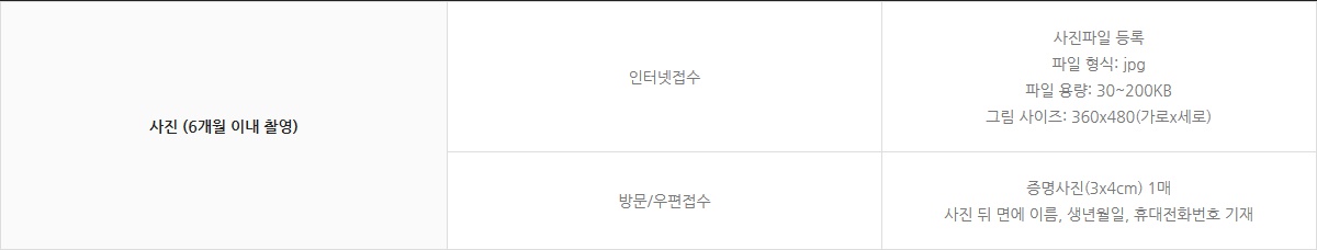 - 2012년 1회 시험부터 합격인정서에 사진이 인쇄되므로 아래 요건에 맞는 사진 준비 필요