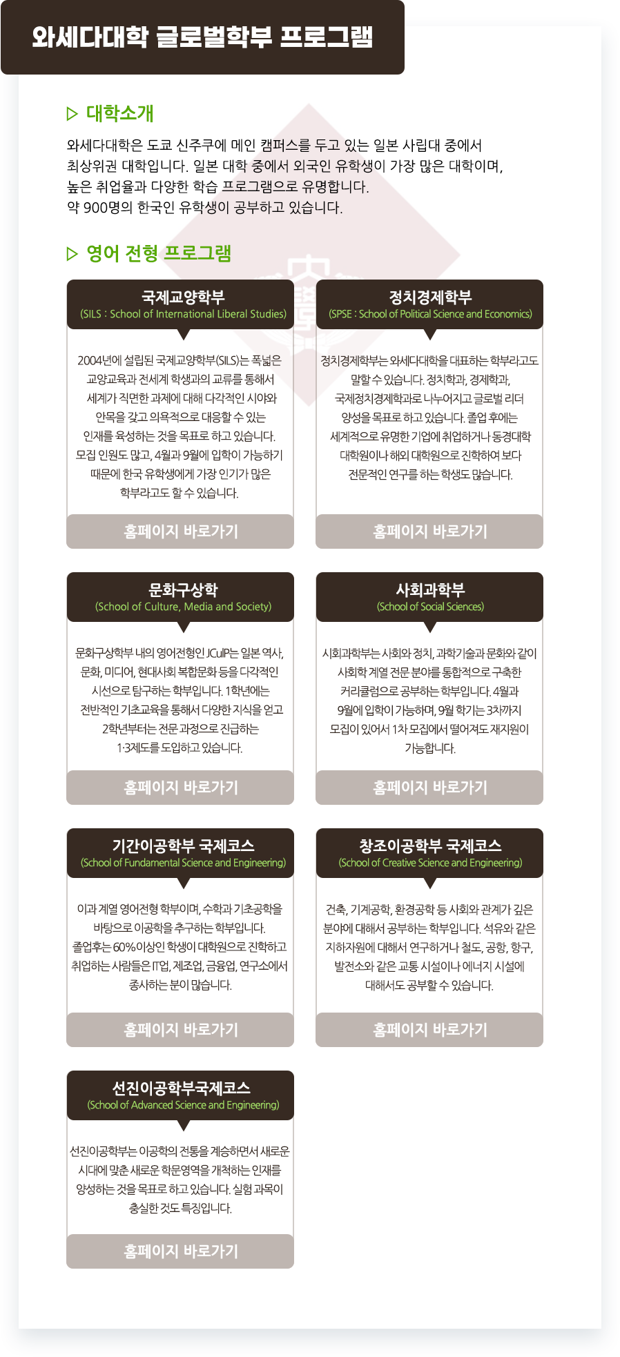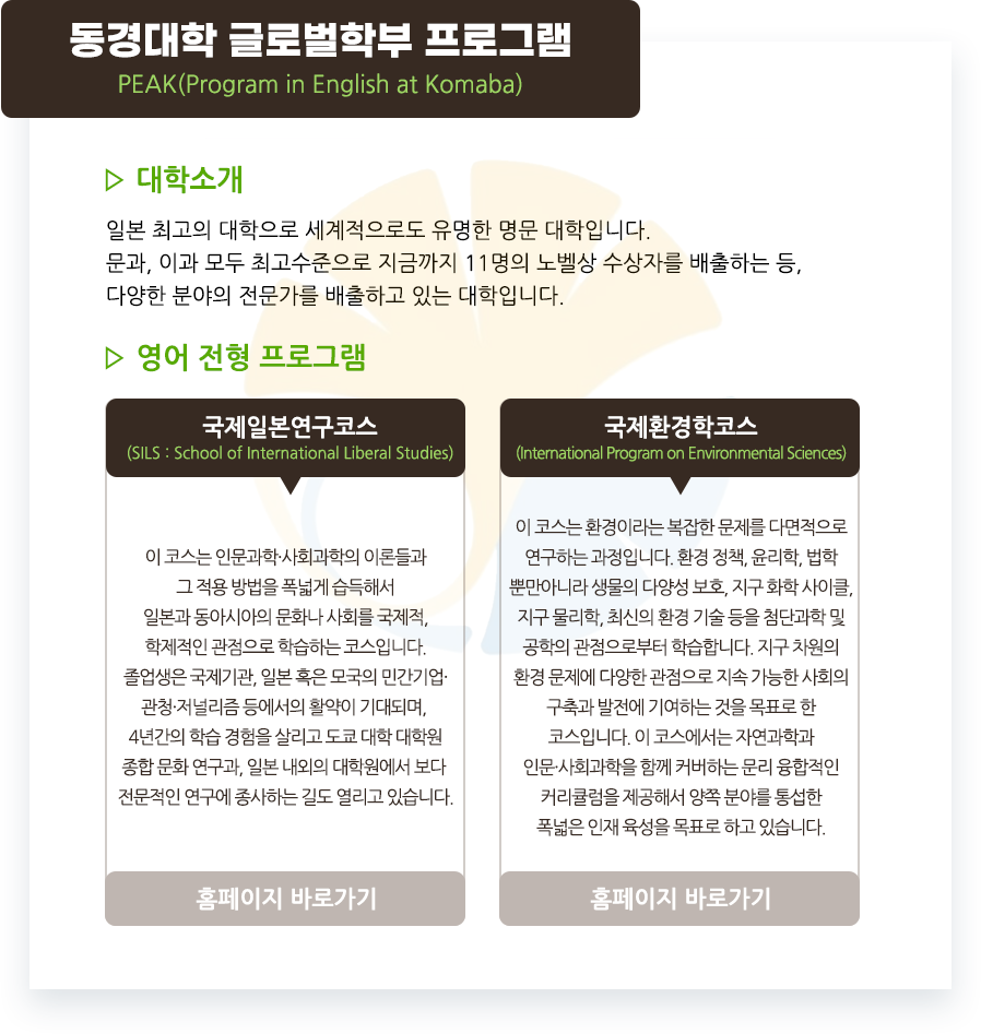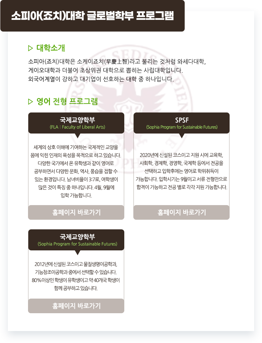대부분 대학이 SAT대신 수능성적도 받지만 게이오대학, 소피아대학, 대학 등은 SAT ACT IBDP로만 지원 가능합니다.