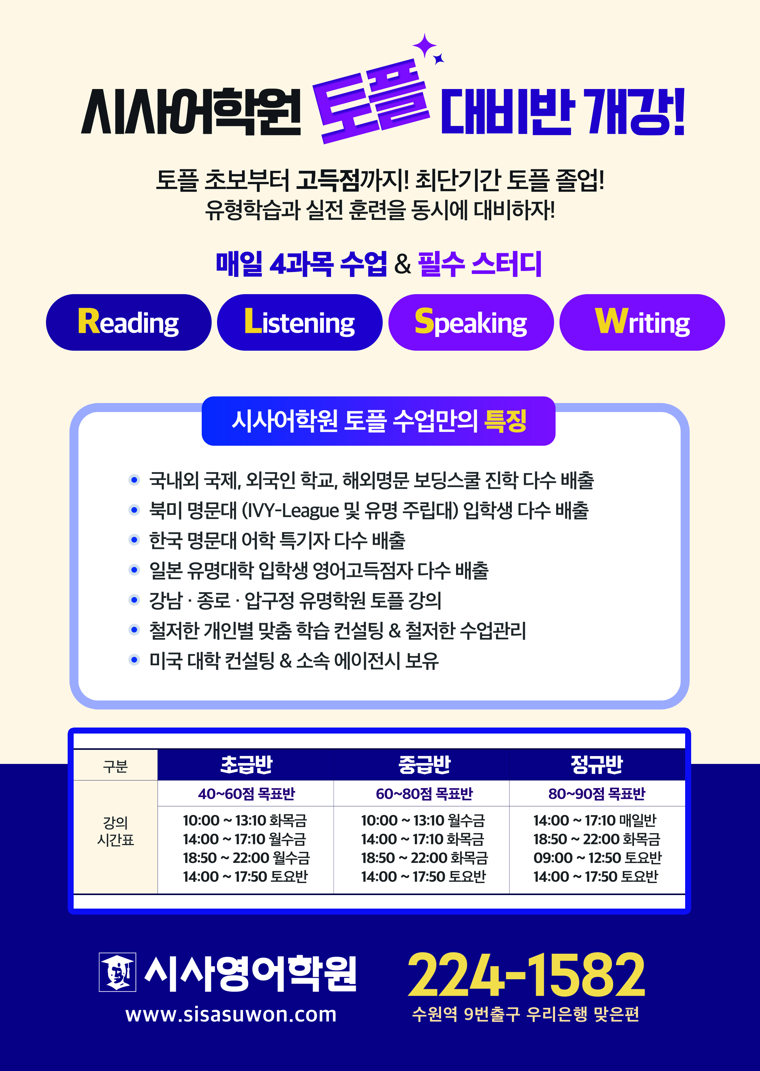 상위권 대학 진학을 원하신다면 SAT는 필수입니다.