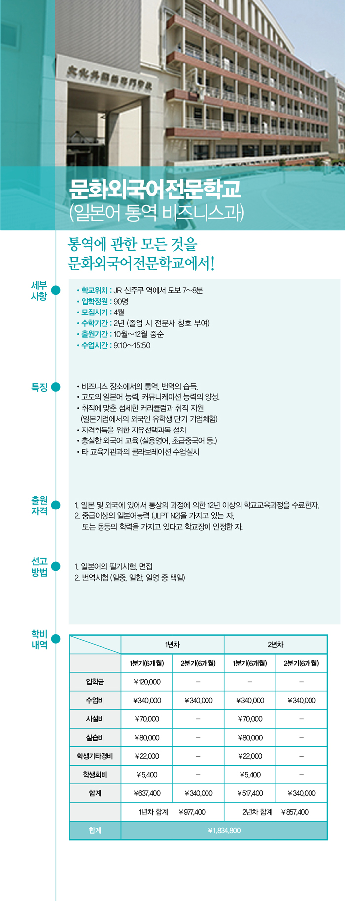 일본어학교개요 및 수속절차